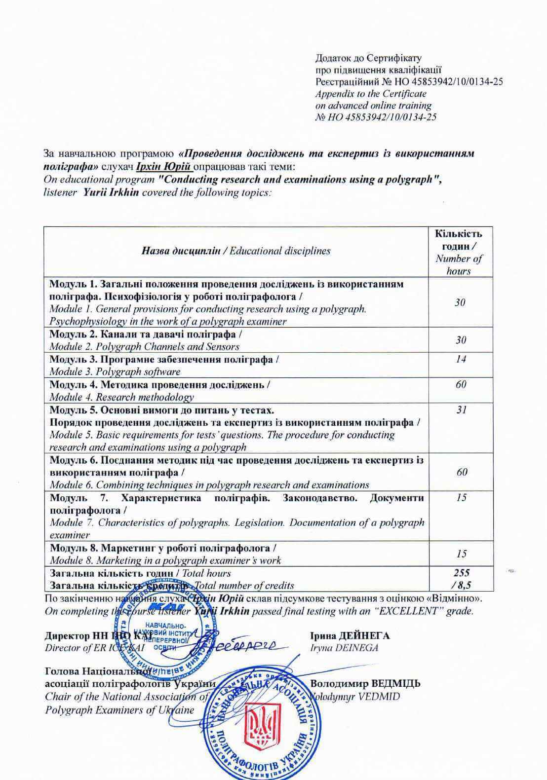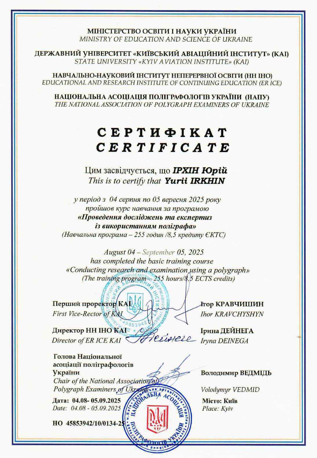 Кожен випускник курсів поліграфологів НАПУ та КАІ отримує: