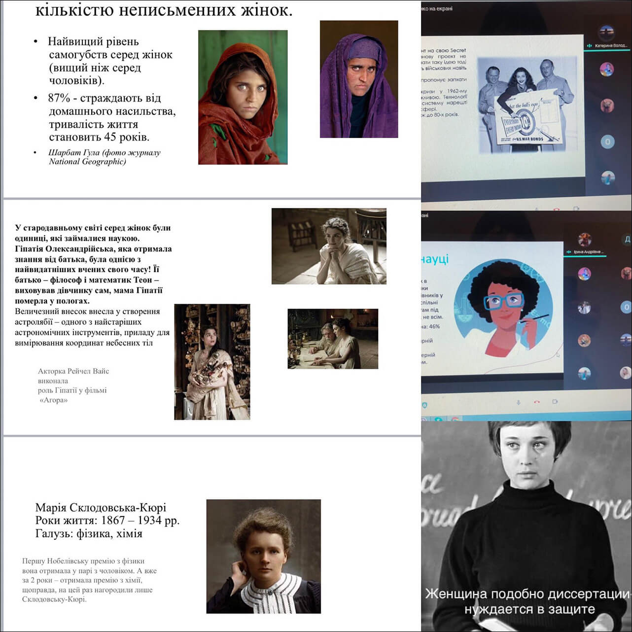 Студенти підготували презентації про персоналії жінок в науці: Геді Ламар (Йовенко Катерина), Ольга Броварець (Понєтайкіна Ірина), Марія Монтессорі (Даниленко Дар’я), Тетяно Бугайко (Ліснича Анна), Герті Тереза Корі (Міньковська Анастасія).