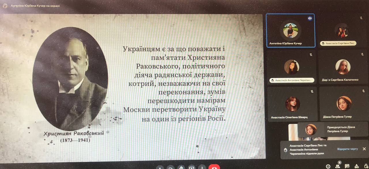 In compliance with the letter of the Ministry of Education and Science of Ukraine regarding the celebration of the 31st anniversary of the independence of Ukraine, the Educational and Scientific Institute of Continuing Education, Department of Public Management and Administration, on the initiative of the Deputy Director of NNINO, Doctor of Economic Sciences, Professor Natalia Mykolaivna Hrushchynska, held a meeting of the student circle on September 29. School of a young public manager” on the topic: “Prominent historical personalities of Ukraine”. The students prepared informative reports and presentations about historical personalities at their own request, among which were the figures of Stepan Bandera – speaker student Angelina Yevtushenko, Hristiyan Rakovskii – speaker student Angelina Kucher; Pylyp Orlyk – speaker, student Lys Nastya, Ivan Sikorskyi – speaker, student Nastya Cherepakhina; Pavlo Skoropadskyi – the speaker is the student Darina Kalatenko, Bohdan Khmelnytskyi – the speaker is the student Karina Semenovska.