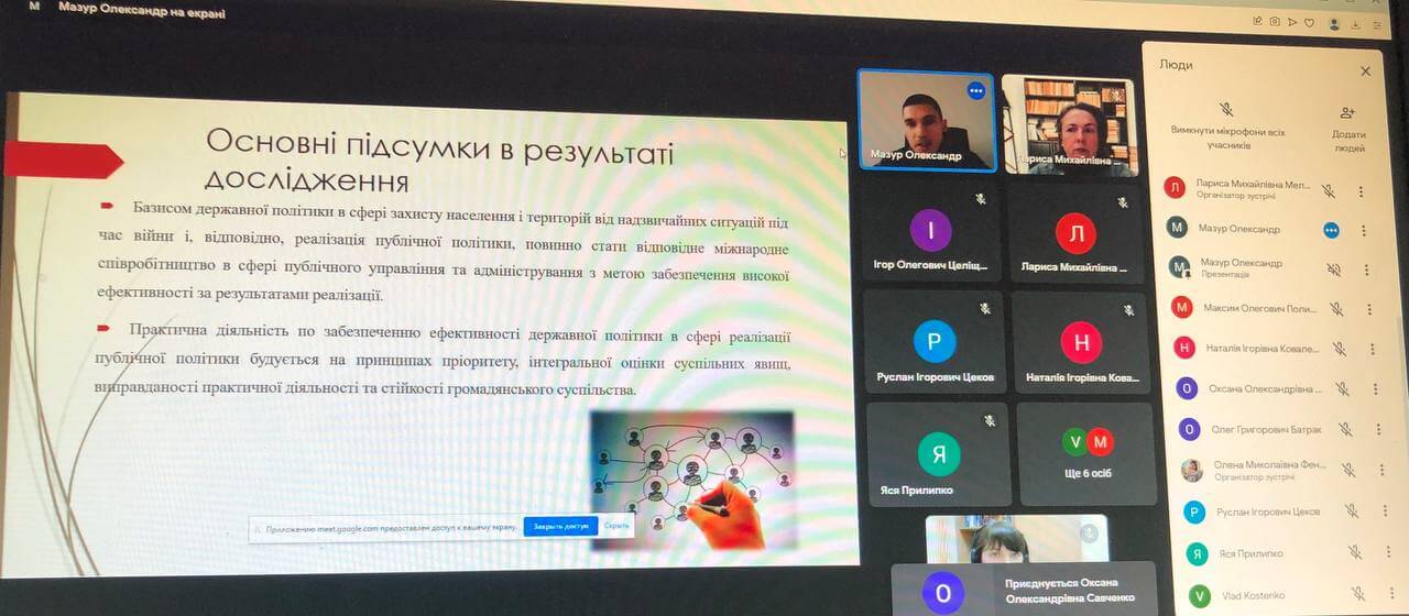 On November 29-30, 2022, the defense of the qualification papers of the OS “Master” specialty 281 “Public management and administration” of the OPP “Management in public administration bodies”, OPP “Economic analysis and forecasting in public administration” of the Department of Public Administration and Administration of the Educational and Scientific Institute took place continuous education. Qualification papers were devoted to current issues, defenses were held using presentation materials and at a high level. Congratulations to the graduates with successful defenses!