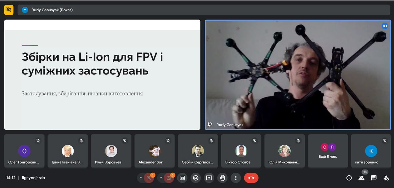 The special guest of the event was the well-known developer of helicopter-type shock UAVs, FPV pilot and manufacturer of batteries for various types of drones — Yuriy Hanusiak.