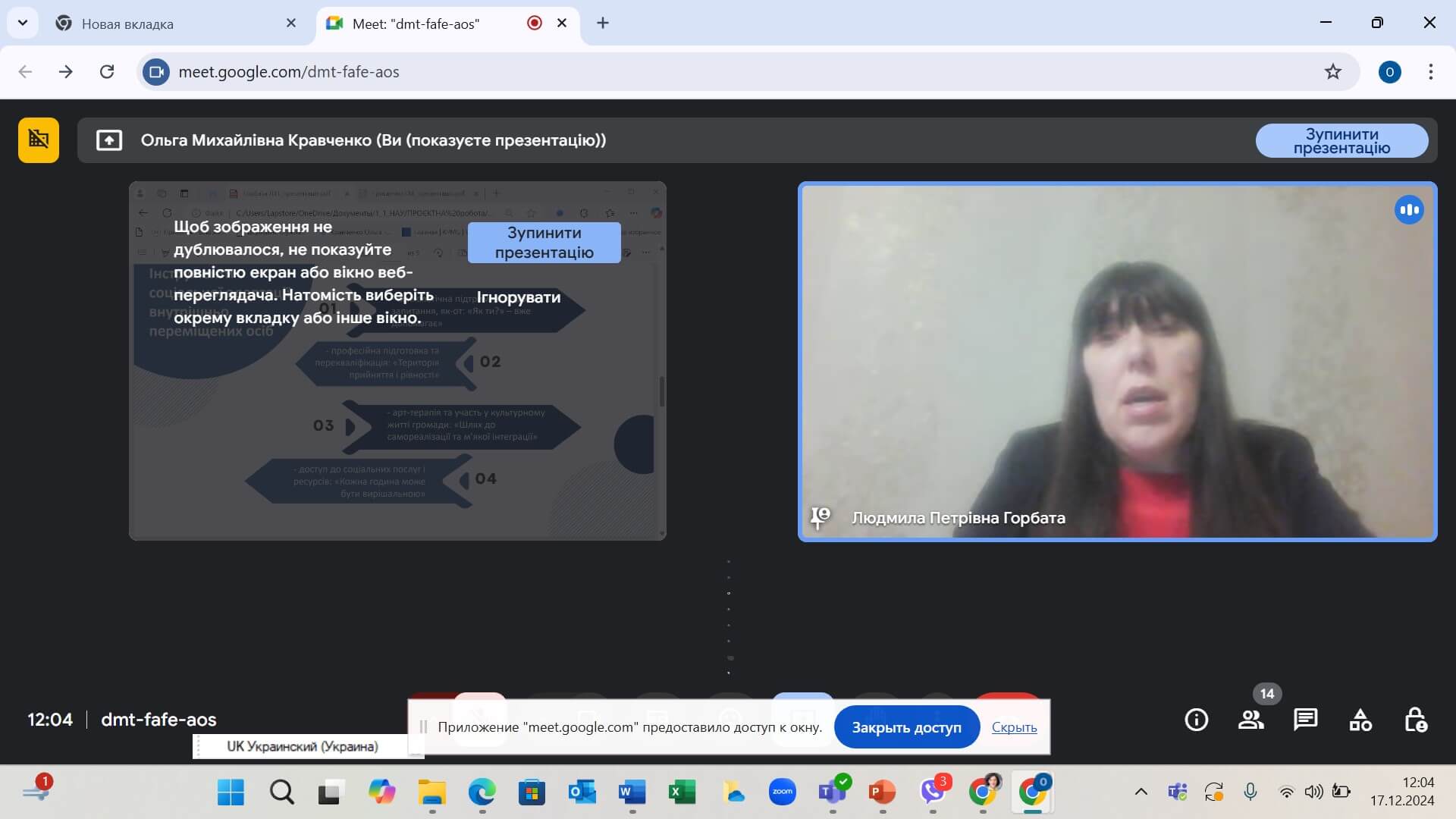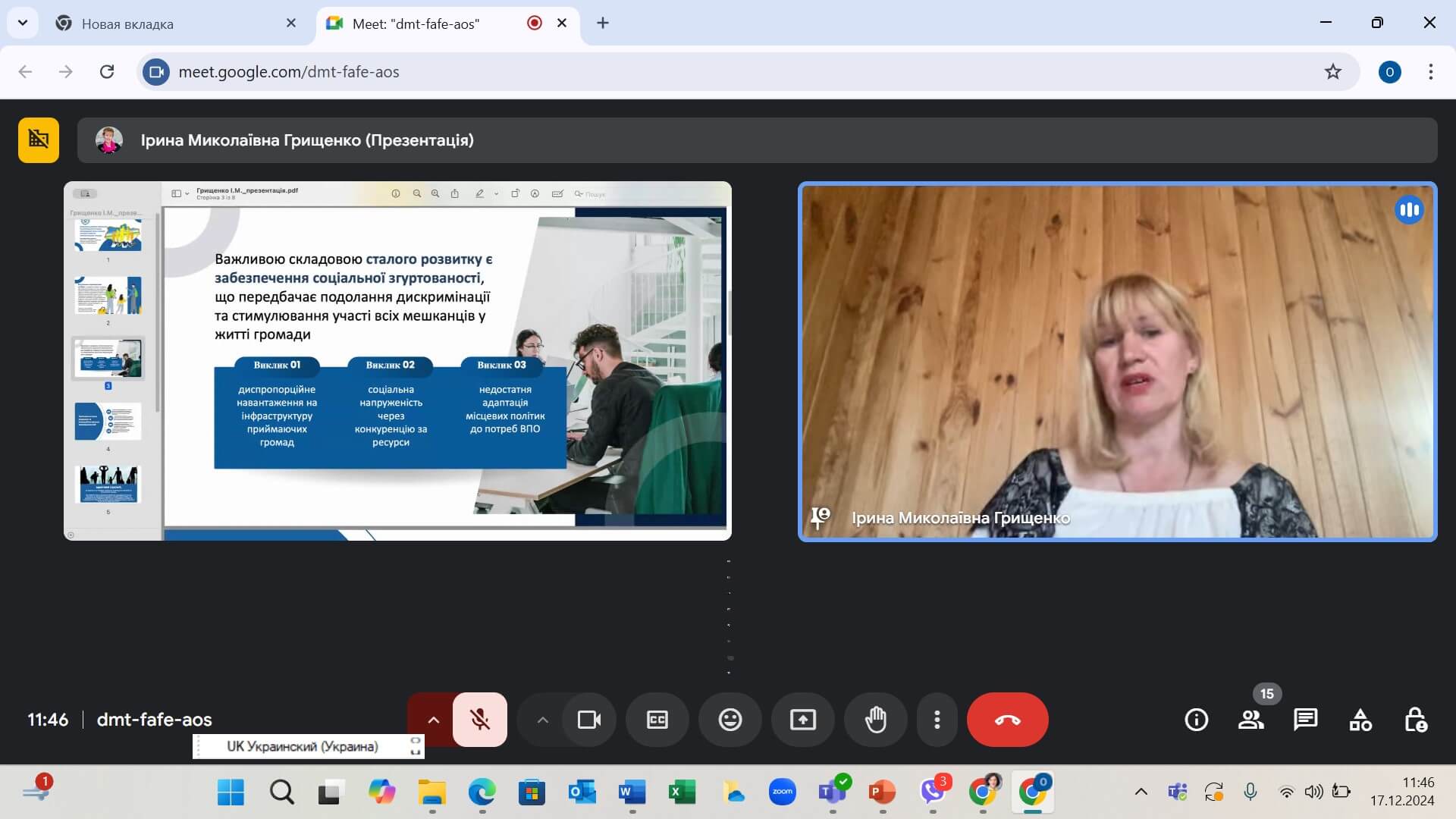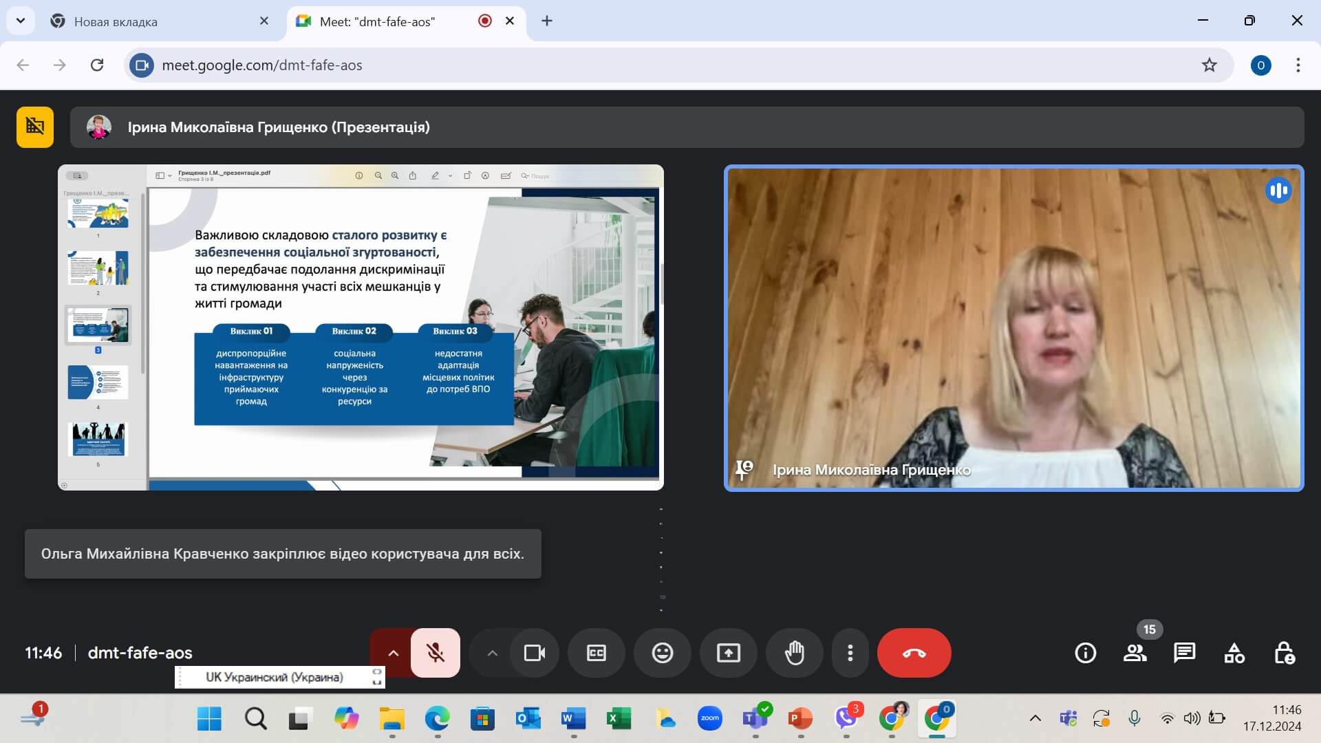 On December 17, 2024, a roundtable discussion “The Human Factor in the Management of Territorial Communities under Martial Law” was held, organized by the Educational and Scientific Institute of Continuing Education in partnership with representatives of the Vasylkiv Territorial Community. The event, which was held online, brought together representatives of the local community and scientists of the Institute for a public discussion of the main challenges and problems faced by territorial communities during the war. The central issues were the peculiarities of local self-government under martial law, interaction and communication between local authorities and the public, and harmonization of relations between internally displaced persons and territorial communities.