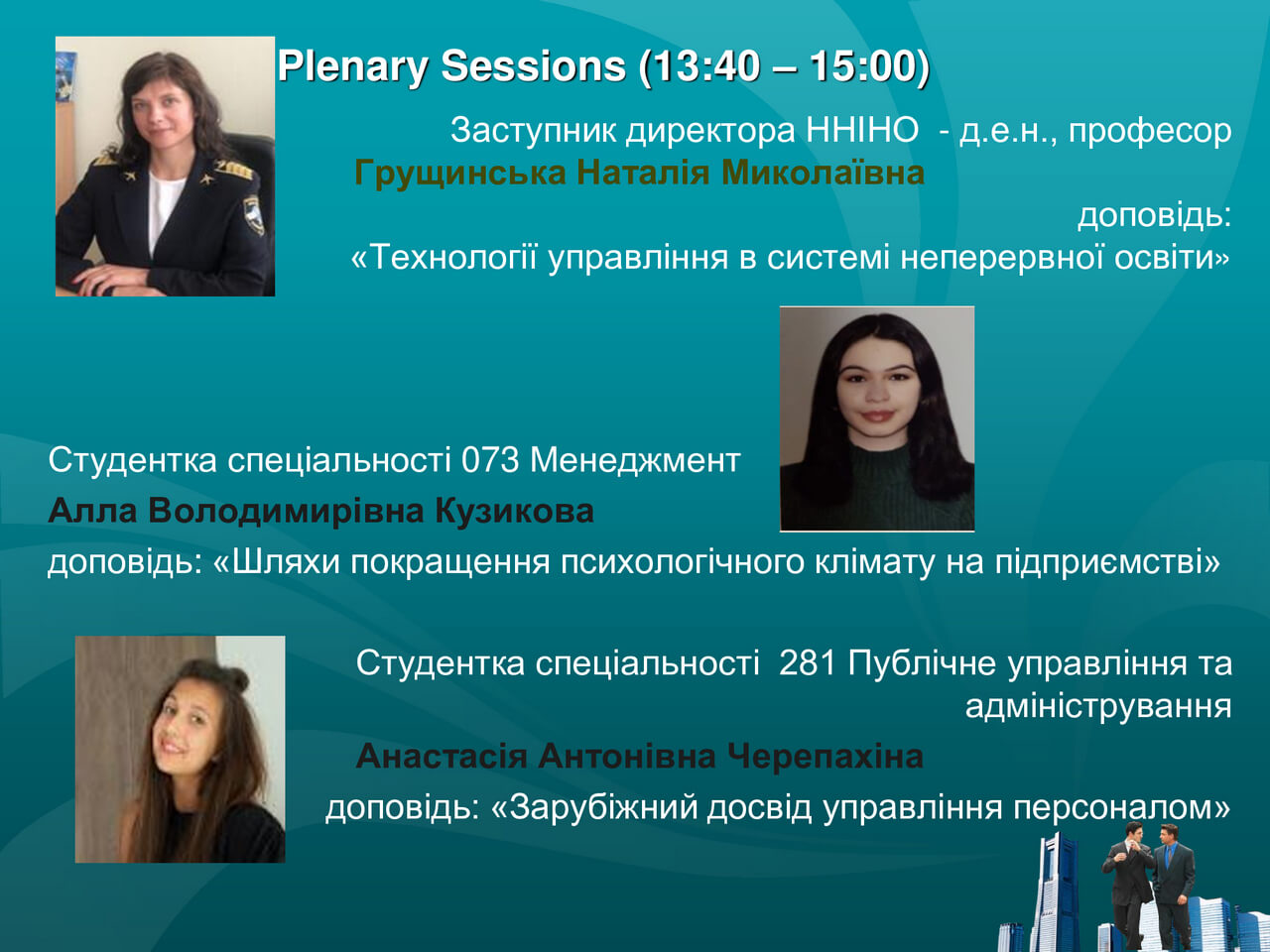 The concluding speech was made by the Deputy Director of NNINO, Doctor of Economics, Prof. Natalia Mykolayivna Hrushchynska, who summed up the results of the round table and noted the need to further involve students in discussions of current issues of innovation in management.