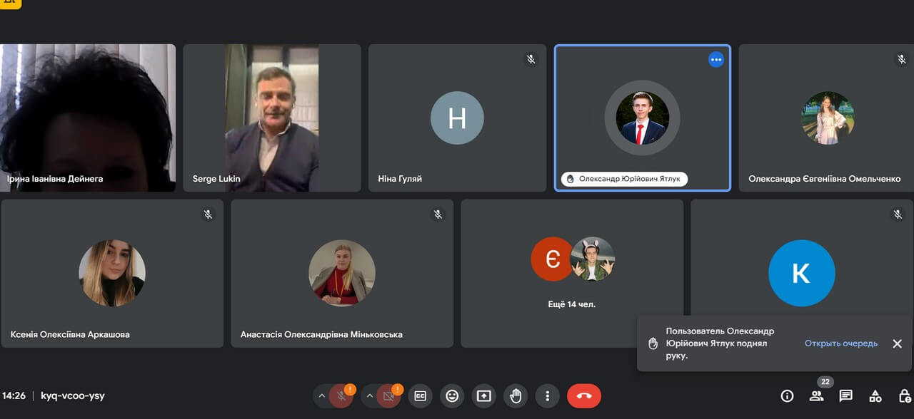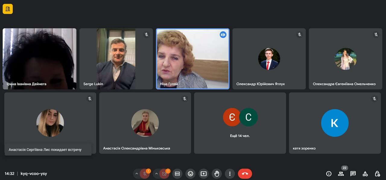 On March 14, 2024, an online meeting of NNINO students took place with stakeholders, civil servants Lukin Serhiiyyvych, director of the Regional Center for the Advancement of Qualifications of Civil Servants of the Kyiv Region, and Guliai Nadiya Ivanovna, Head of the Department of Professional, Higher Education, Science and Innovative Activities of the Department of Education and Science of the Kyiv Regional State administration