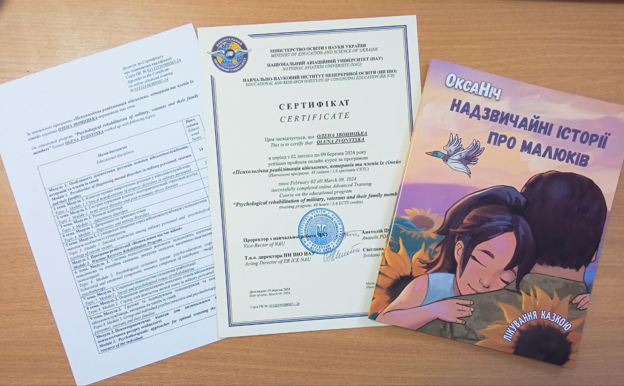 За підсумками програми слухачів очікував сюрприз, разом з державним сертифікатом НАУ і додатком до нього, вони отримали книжку випускниці курсів і нашої партнерки – це збірка казок Наталії ОксаНіч, практичної психологині, казкотерапевтині, волонтерки, яка носить назву «Надзвичайні історії про малюків» і рекомендована Українською Асоціацією арт-терапевтів у подоланні стресів і травм у дітей.